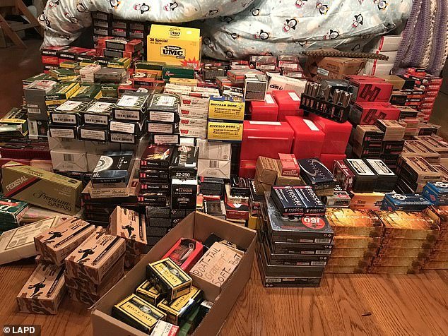 新闻直升机拍摄的照片显示,美国警方在洛杉矶一座价值700万美元的豪宅中缴获了大量武器。这些武器包括手枪、步枪还有大量子弹,警方正在进行清点。美国联邦烟酒枪炮及爆炸物管理局探员从霍姆比山的一座房屋中移走数百支枪,他们正与洛杉矶警察局展开联合调查。洛杉矶警方说,周