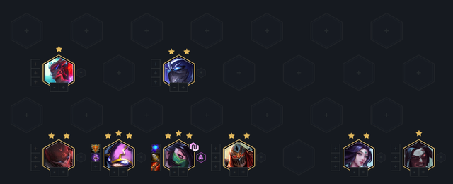 3-2拉到6人口进入中期,先D一波,D出天选刺客,最好是D出天选阿卡丽。如果没有D出天选刺客那就该转阵容了,节奏很快的情况下6级可以ALLIN。有了天选阿卡丽最后先把阿卡丽拉到2星,看看6人口能不能运气好直接出个慎上4忍者,没有慎就继续上猩红和神盾。