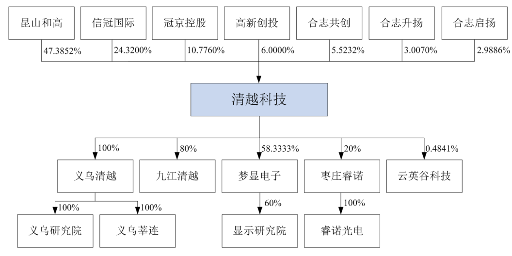 本次上市前,清越科技的实际控制人为高裕弟。据招股书披露,高裕弟通过昆山和高间接控制该公司47.3852%股份的表决权,通过合志共创间接控制该公司5.5232%股份的表决权,合计控制清越科技52.9084%股份的表决权。