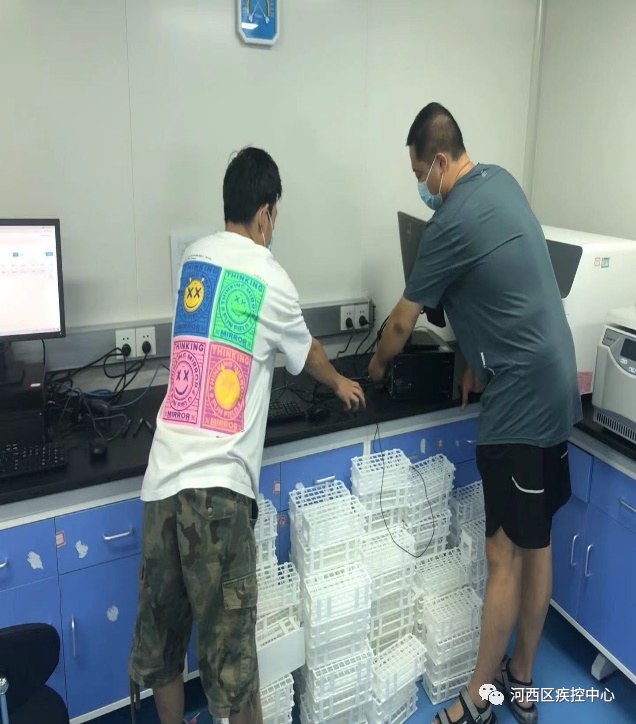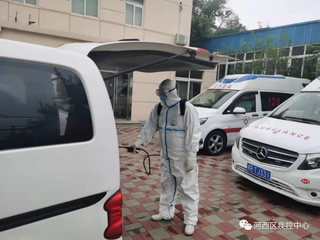为保障检测效率,核酸样本采集之后,区疾控中心负责转运的人员及时、快速的将核酸样本转运至河西区城市检测基地,消毒人员按照规范做好样品和转运车的消毒工作。