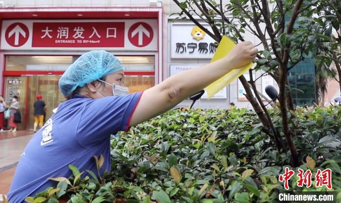浦阿姨在超市附近悬挂补蚊贴纸 李秋莹 摄俗话说,“秋天的蚊子嘴开花”,秋天是蚊子最毒的季节,它们不但没消失,反而叮咬得愈发卖力。在恼人的蚊子面前,人类的烦恼是相通的,毕竟谁也不想被叮上几个蚊子包。“超市的顾客对我来说就像街坊邻居一样熟悉,既然我有防治蚊虫的常识,做个温馨的小表格给他们提示一下,也挺好的。”浦阿姨说。